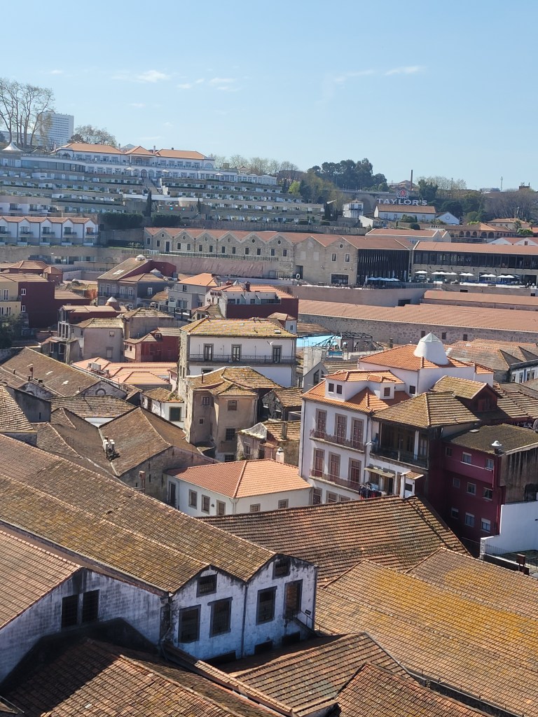 We walked around a little bit after that and grabbed some ice cream and “take away” beer by the water. Then we crossed the bridge and decided to try a rooftop we saw from the teleferico, Espaco Porto Cruz. The bouncer told us it was full but to come back in a few minutes. We sat at an outdoor bar nearby and waited until the line was gone and boom, up we went. Music was hitting different, and the sangria was hitting even better. The place was a blast, and the view of Porto at night was stunning. This bar is a must, we stayed for a while.