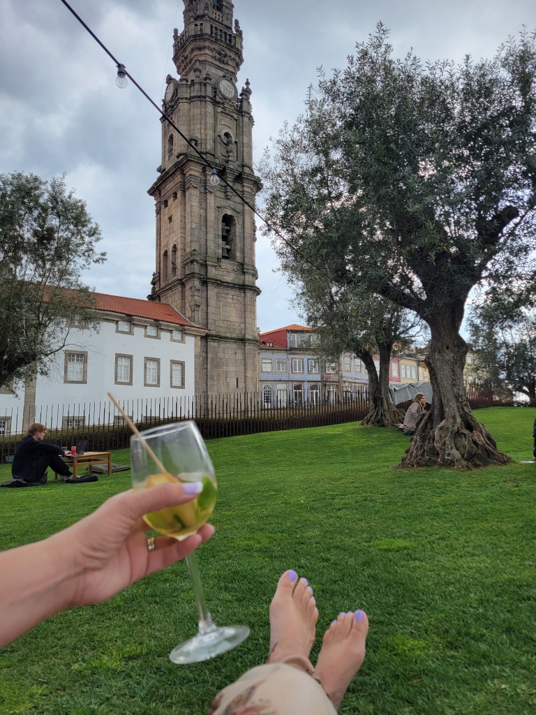 I have zero sense of direction, but my husband is a human compass, so he found that bar fast. The name of the bar is Base and it was just amazing. It’s an outdoor area with lounge music and magically delicious sangria. We sat on the grass and they had small tables and pillows to make it feel almost like a picnic. I loved their white sangria, the music, the vibe, todo. It was also very close to Livraria Lello, the library that inspired Harry Potter’s bookstore, but the line was fucking long so we just walked by it and looked from outside. It is a very popular spot and if you have the time and the patience, I suggest you go inside.